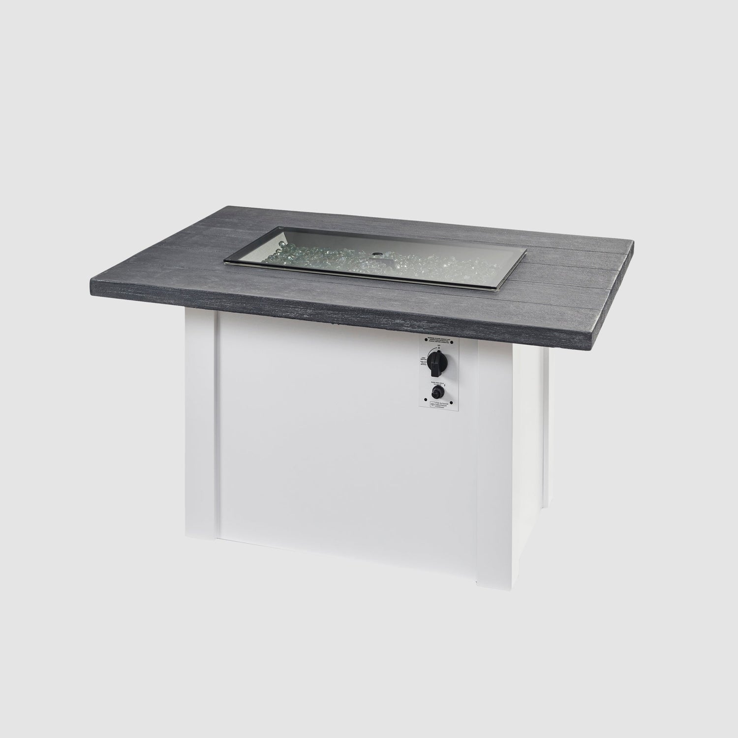 The Driftwood Havenwood Gas Fire Pit Table offers a contemporary style that's perfect for entertaining. The unique Driftwood Everblend textured top pairs with a grey powder-coated aluminum base. The 12" x 24" Crystal Fire® Plus burner offers a warm, inviting glow. Every handcrafted Everblend top is one-of-a-kind – variations in color, texture, and pattern will occur.