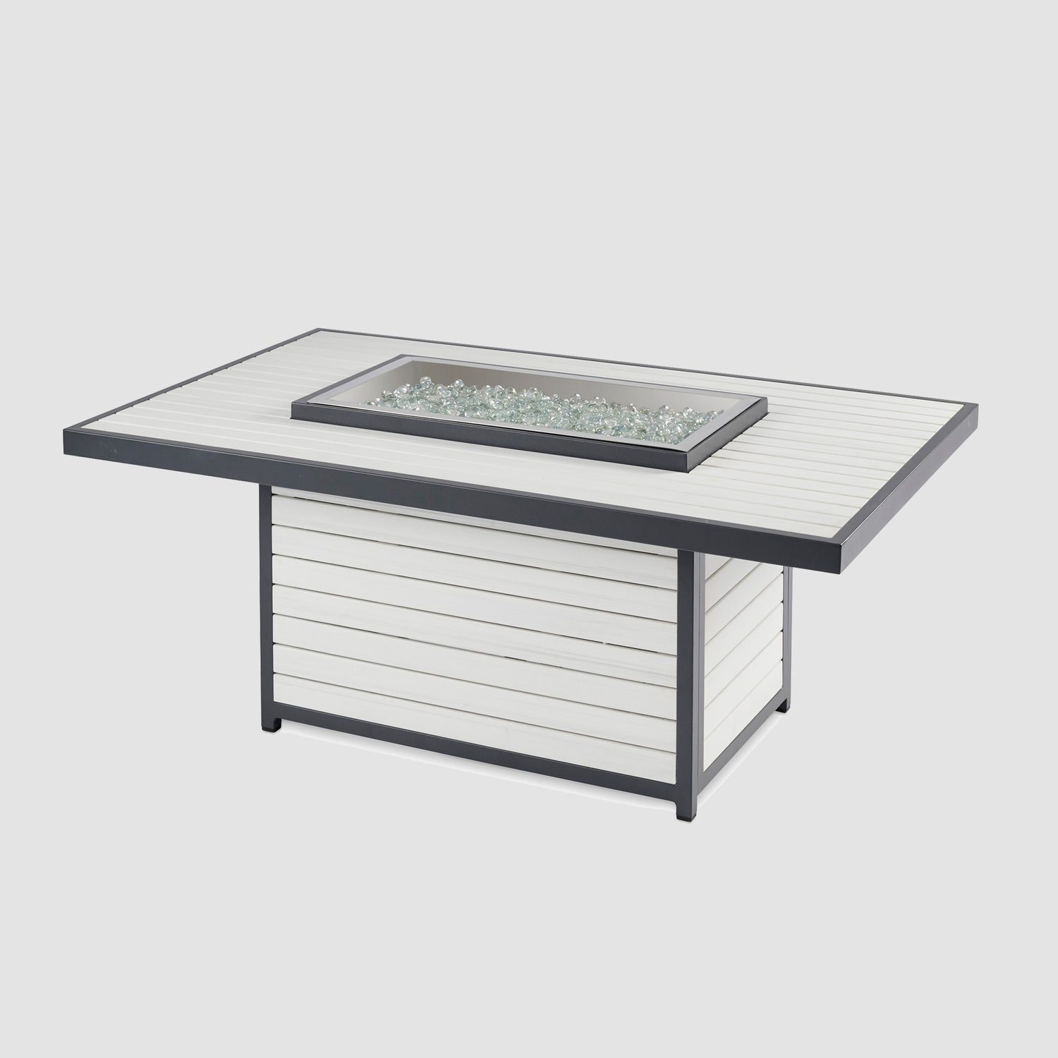 The easy to care for composite deck top and base brings a modern, but warm look to your outdoor room. The unique elevated 12" x 24" Crystal Fire® burner is UL listed for safety and will wow your guests. The Kenwood comes in Umber Brown, while the Brooks comes in Taupe, White, or Light Tan.
