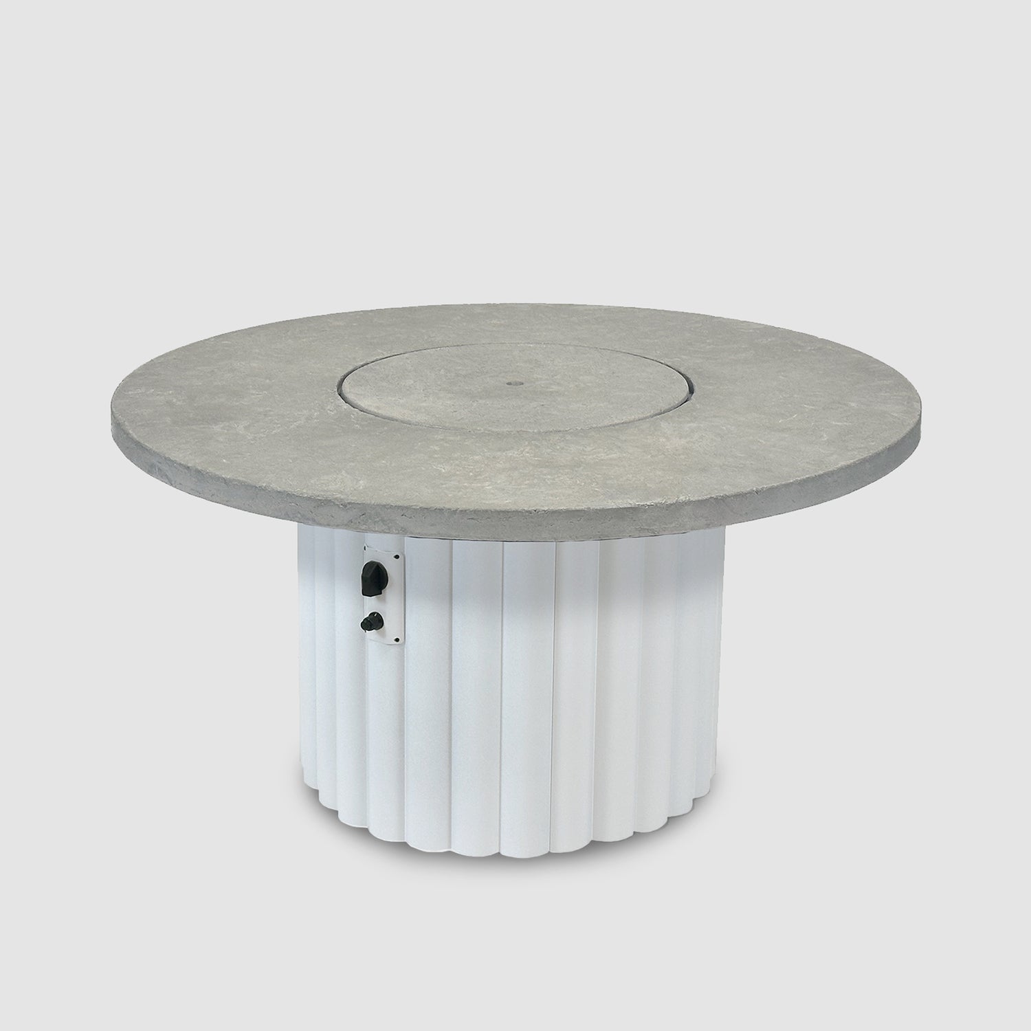 The rust-resistant scallop aluminum base, powder-coated in Charcoal Grey, Black, Brown, or White blends durability with elegance and cleverly conceals a 20 lb. propane tank behind a sliding access door. Set up for liquid propane but easily convertible to natural gas with the included conversion kit, the Reverie adapts to your needs.